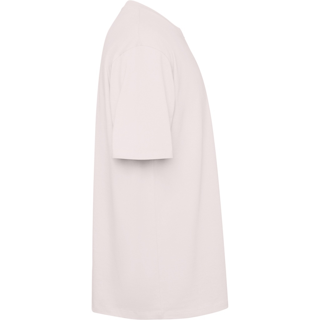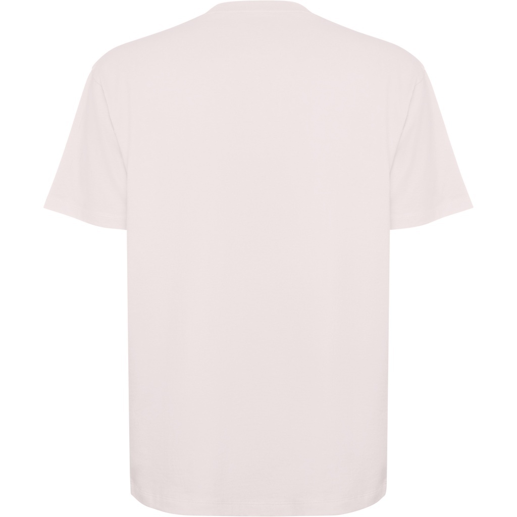 Koszulka o kroju oversize z krótkim rękawem. Okrągły dekolt wykończony ściągaczem 2x1 z przykrytymi szwami w tym samym kolorze materiału. · Boczne szwy. Szerokie podwójne przeszycia na rękawach i obszyciu.