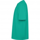 Koszulka o kroju oversize z krótkim rękawem. Okrągły dekolt wykończony ściągaczem 2x1, ze szwami przykrytymi materiałem w tym samym kolorze. · Boczne szwy. Szerokie, podwójne przeszycia na rękawach i obszyciu.