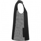 - Kołnierzyk, boczne panele i plisy na piersi.