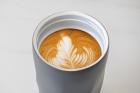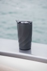 Kubek wyposażono w zakręcaną, szczelną pokrywkę przystosowaną do nawet mocno spienionych napojów. Pokrywka ma praktyczną pętlę umożliwiającą przypięcie opcjonalnego paska do noszenia, co pozwala wygodnie przenosić napój bez użycia rąk.