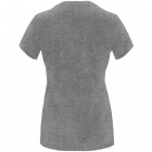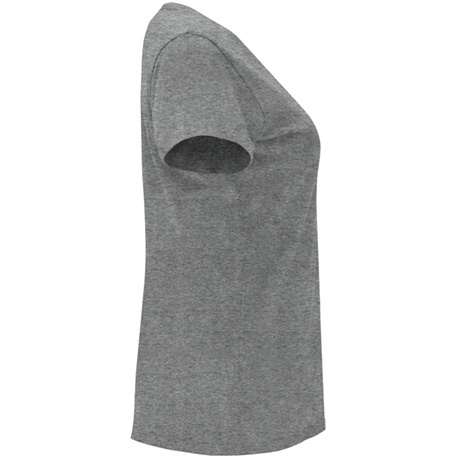 Damska koszulka z krótkim rękawem. Okrągły prążkowany dekolt 1x1. Dopasowany krój. Wzmocnione, kryte szwy przy kołnierzyku.