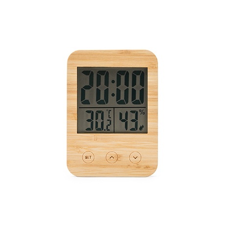 Stacja pogody z frontem wykonanym z naturalnego bambusa — eleganckie i funkcjonalne rozwiązanie do domu i biura.
