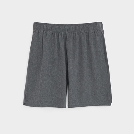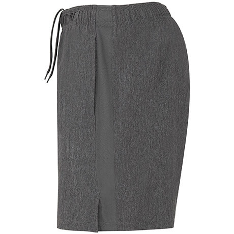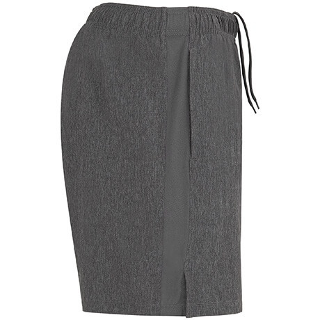 Szorty multisportowe uszyte z dwóch tkanin. Elastyczny pas z kontrastowym, wewnętrznym sznurkiem. Boczne panele i wewnętrzna część nogawki z oddychającego materiału. Dwie kieszenie po bokach. Asymetryczne, boczne wcięcia.