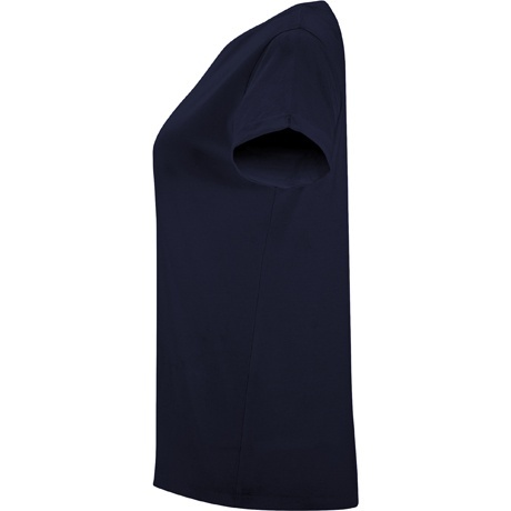 Damska koszulka z krótkim rękawem o klasycznym, okrągłym dekolcie wykonanym z tej samej dzianiny. Szwy na karku zostały wzmocnione i ukryte w kolorze materiału, a podwijane rękawki mają dodatkowe wzmocnienie w czterech punktach, co zwiększa trwałość.
