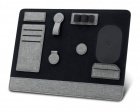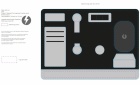 - Zintegrowana podstawka pod laptopa: zapewnia wygodny kąt widzenia oraz optymalny przepływ powietrza dla chłodzenia laptopa. Organizer na biurko oferuje schowek, dwie magnetyczne stacje dokujące, uchwyt na długopis, uchwyt na karty, klips do kabla i podstawkę na telefon.