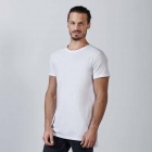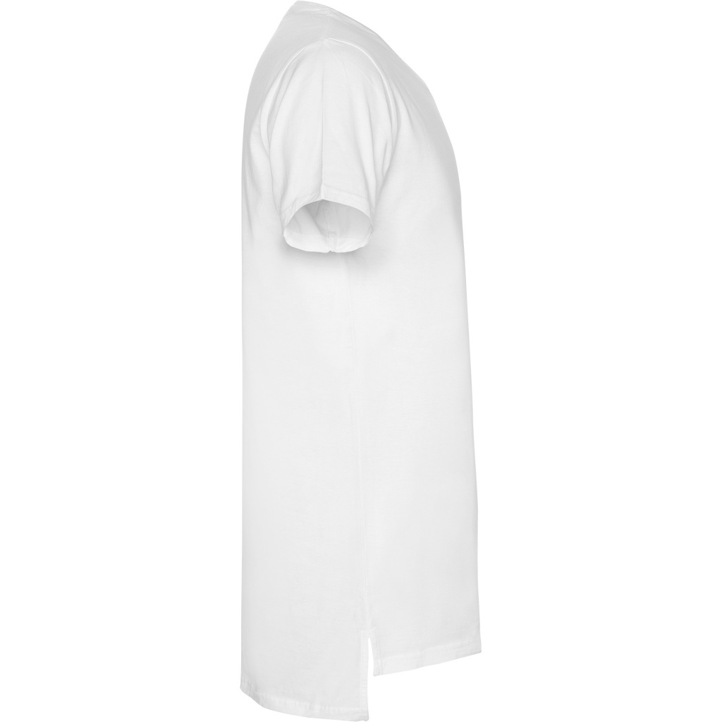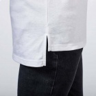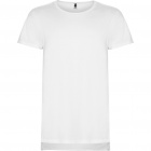 Koszulka z krótkim rękawem i przedłużanym tyłem, dekolt wykończony dwiema warstwami tkaniny z dodatkiem elastanu. Boczne rozcięcia u dołu koszulki.