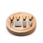 Zestaw sztućców do serów składający się z 4 elementów wykonanych ze stali nierdzewnej z drewnianą rączką. Sztućce umieszczono w praktycznym drewnianym pudełku, którego górna powierzchnia pełni funkcję deski do krojenia.