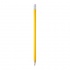Okrągły, drewniany ołówek wyposażony w gumkę.
