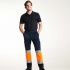 Długie spodnie robocze z licznymi kieszeniami, dobrze widoczne z daleka.