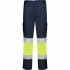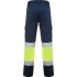 Długie spodnie robocze z licznymi kieszeniami, dobrze widoczne z daleka.