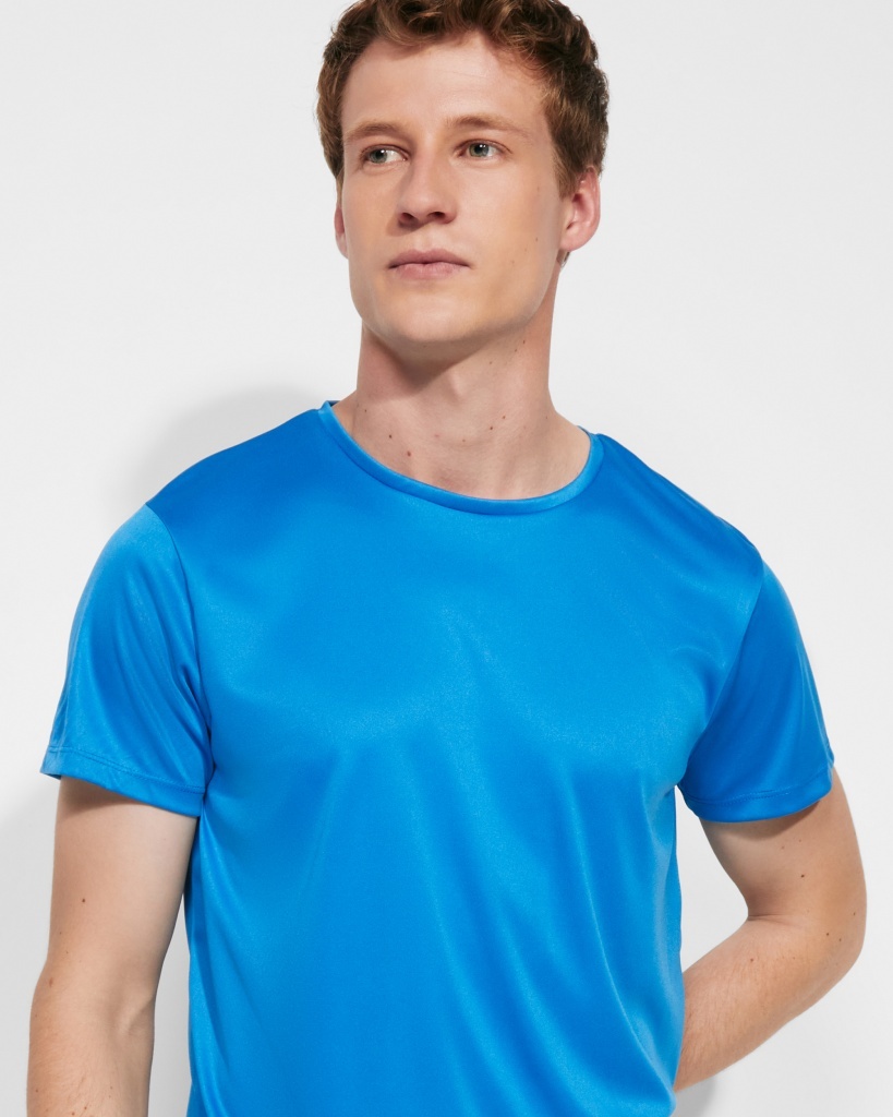 Oddychająca koszulka techniczna z krótkim rękawem, z okrągłym wycięciem na szyję oraz obwódką w tym samym kolorze.