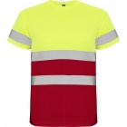 Techniczna koszulka z krótkim rękawem zapewniająca wysoką widoczność. Okrągły dekolt wykonany z tej samej tkaniny z wzmocnionymi szwami. Dwie poziome taśmy odblaskowe na środku oraz pojedyncze taśmy na rękawkach.