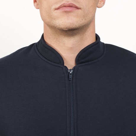 Bluza z zamkiem, zaokrąglony kołnierzyk. Wzmocnione, kryte szwy na karku. Kieszenie boczne. Prążkowane mankiety i pas.