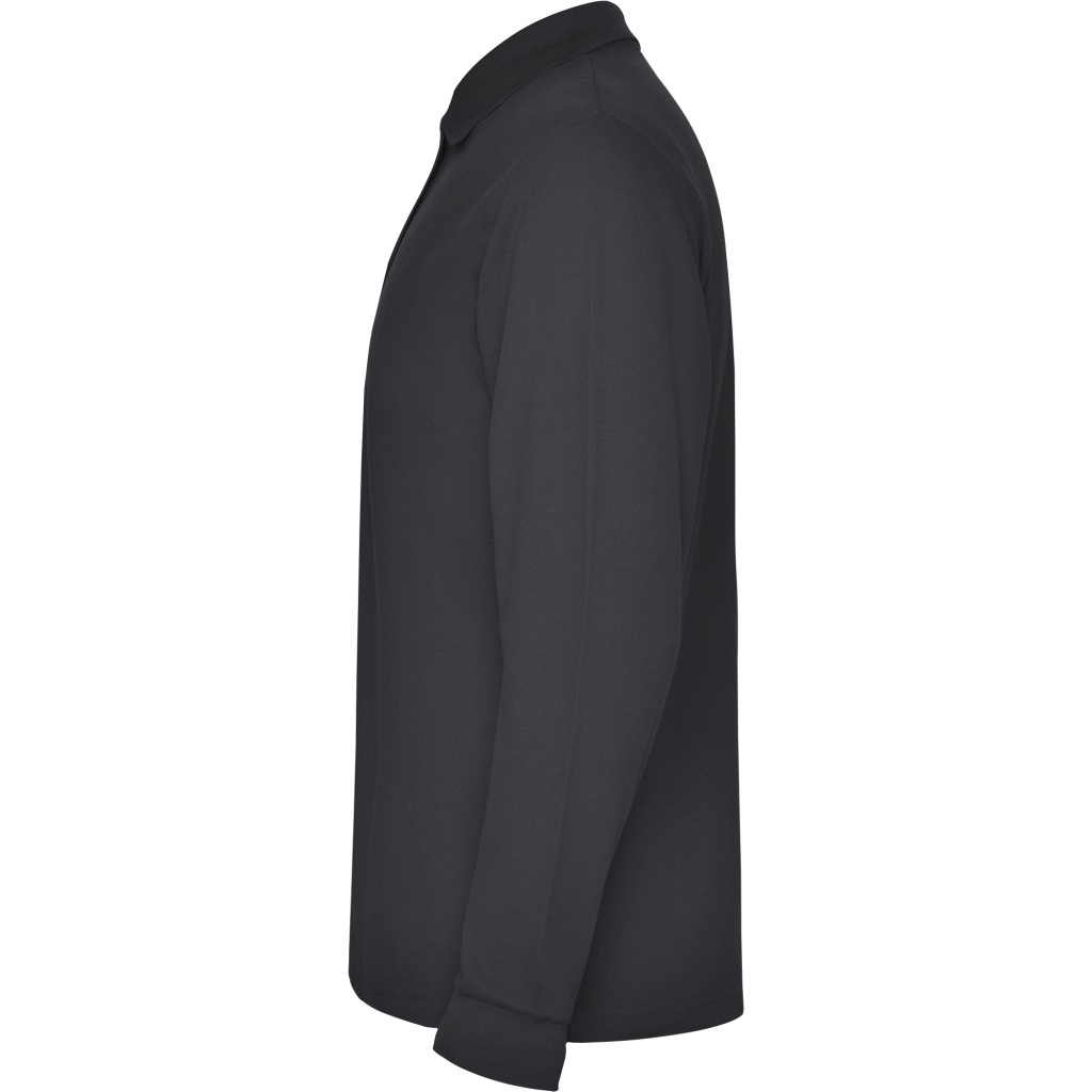 Koszulka polo z długim rękawem. Zapięcie z trzema guzikami. Prążkowany kołnierzyk i mankiety. Wzmocnione, kryte szwy przy kołnierzyku. Elastyczne ściągacze przy mankietach. Rozcięcia boczne u dołu.