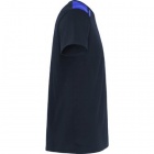Kolorowa koszulka z krótkim rękawem, z okrągłym dekoltem wykończonym kontrastową wewnętrzną obwódką. Kontrastowe wstawki na ramionach oraz dopracowane detale.