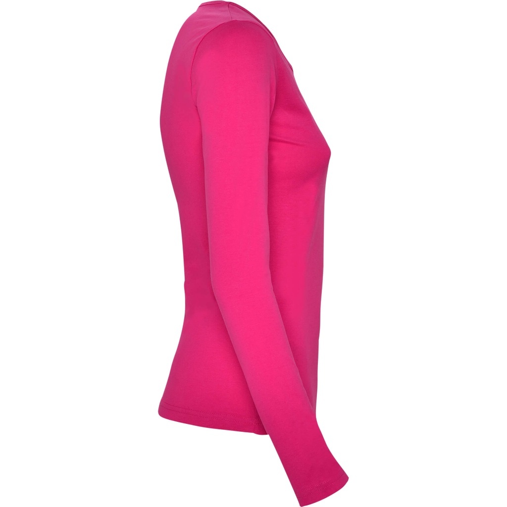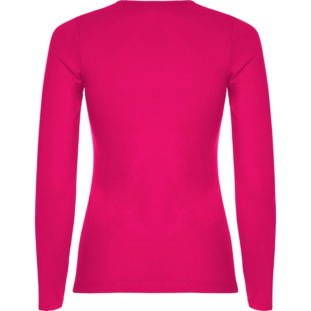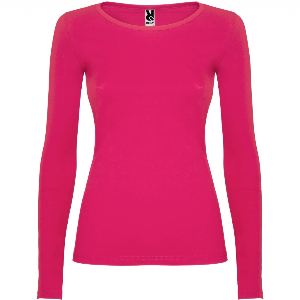 Damska koszulka z długim rękawem o dopasowanym kroju. Bez mankietów. Posiada szwy boczne.