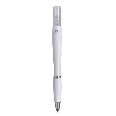 Antybakteryjny długopis wyposażony w atomizer oraz rysik do ekranów dotykowych.