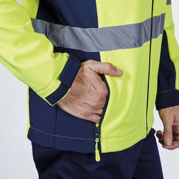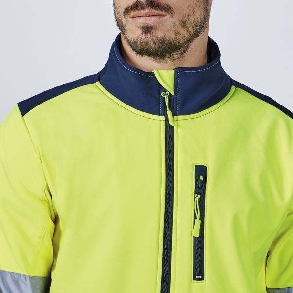 Dwukolorowy softshell zapewniający dobrą widoczność.