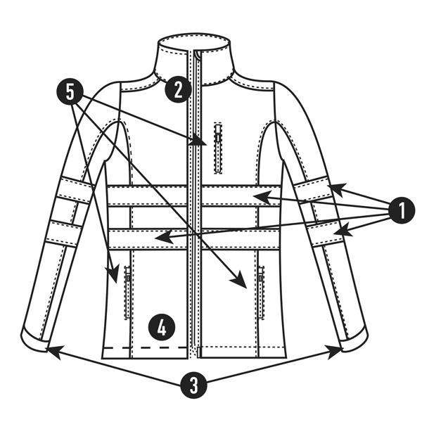 1.- Odblaskowe paski na piersi i rękawach.