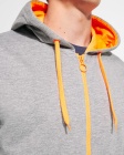 Rozpinana bluza z fluorescencyjnymi akcentami. Kaptur ma podszewkę z mikro perforowanej tkaniny poliestrowej w kontrastującym fluorescencyjnym kolorze. Sznurek i metalowe oczka również w fluorescencyjnym kolorze. Prążkowane mankiety i dół bluzy 1x1.