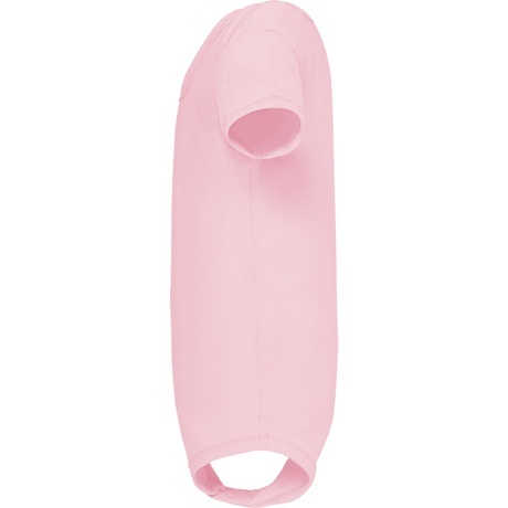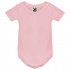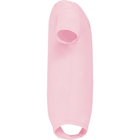 Body z krótkim rękawem dla niemowląt, tkanina single jersey. Okrągły dekolt wykończony lamówką 1x1. Zapięcie w kroku na zatrzaski.