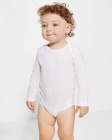 Body z długim rękawem dla niemowląt, wykonane z tkaniny single jersey. Okrągły dekolt wykończony lamówką 1x1. Zapięcie w kroku na zatrzaski.
