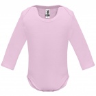 Body z długim rękawem dla niemowląt, wykonane z tkaniny single jersey. Okrągły dekolt wykończony lamówką 1x1. Zapięcie w kroku na zatrzaski.