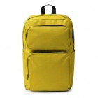 Plecak uszyty z tkaniny 600D RPET, wyposażony w podwójną przednią kieszeń zapinaną na zamek oraz 2 boczne kieszenie.
