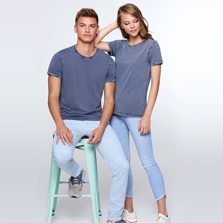 Krótki rękaw, efekt dżinsu — t-shirt doskonały zarówno na akcje promocyjne, jak i do codziennego użytku.
