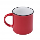 Kubek ceramiczny o wykończeniu w stylu vintage, wyposażony w wygodny, okrągły uchwyt.