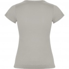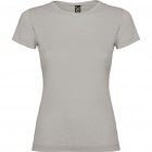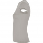 Dopasowana koszulka damska. Zaokrąglony, dwuwarstwowy ściągacz przy szyi, typowo damski fason. Wzmocnione, kryte szwy przy kołnierzyku i na ramionach, szwy boczne.