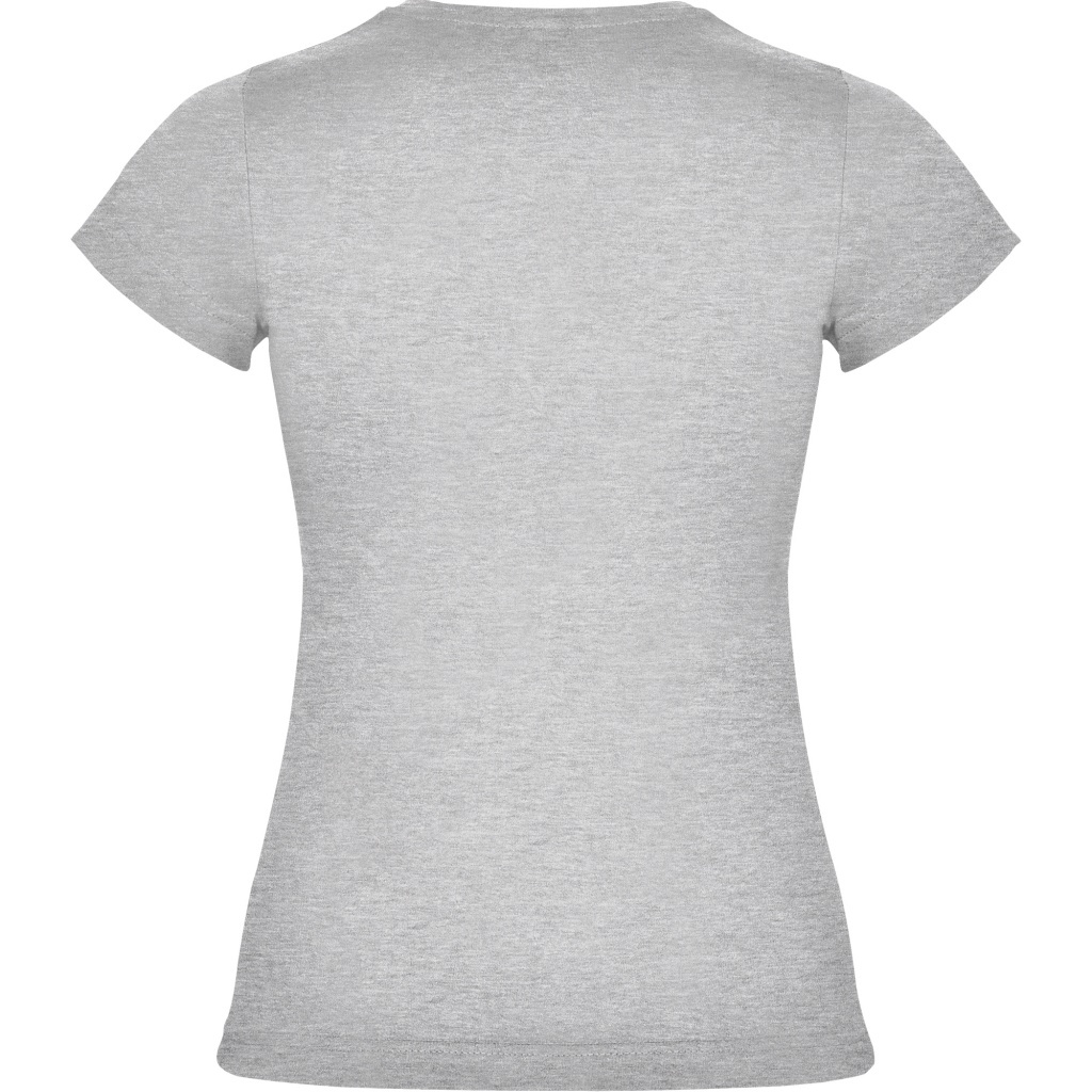 Dopasowana koszulka damska. Zaokrąglony, dwuwarstwowy ściągacz przy szyi, typowo damski fason. Wzmocnione, kryte szwy przy kołnierzyku i na ramionach, szwy boczne.