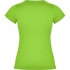Dopasowana koszulka damska. Zaokrąglony, dwuwarstwowy ściągacz przy szyi, typowo damski fason. Wzmocnione, kryte szwy przy kołnierzyku i na ramionach, szwy boczne.