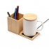 • Jules - Uchwyt na długopisy ze składanym podgrzewaczem do kubka wykonanym z bambusa.