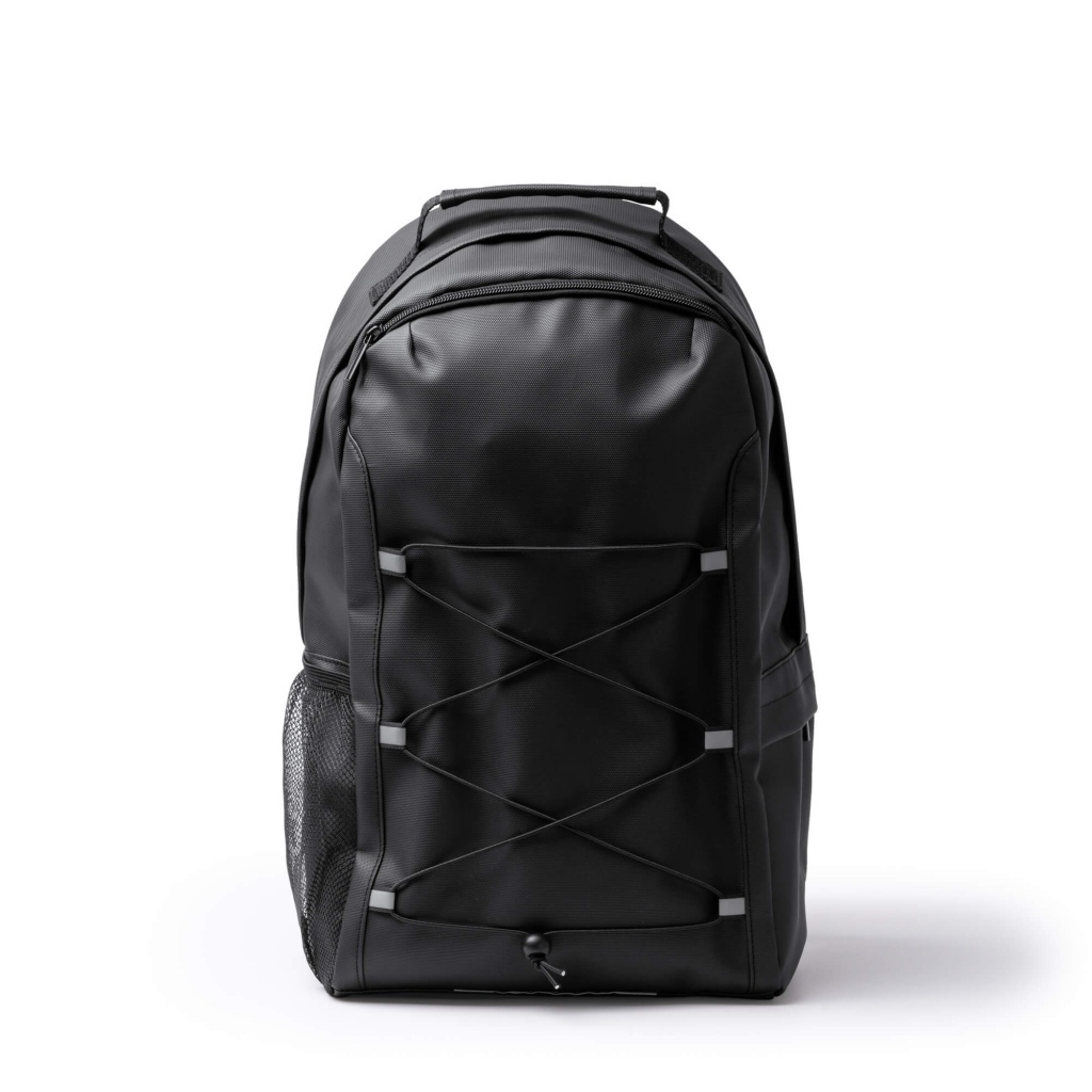 Plecak z wytrzymałej skóry PU z odblaskowymi detalami. Posiada przestronną główną komorę z wewnętrzną kieszenią na laptopa do 17 cali, przednią część z elastycznymi ściągaczami oraz boczną kieszeń. Regulowane uchwyty, wyściełane plecy i rączki. Pojemność: 20l