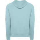 Uniwersalna bluza z kapturem w kroju unisex. Model typu kangurka z praktyczną kieszenią na brzuchu. Gładkie sznurki wyposażone w haftowane oczka. Brzegi bluzy przy pasie i rękawach wykonane z tego samego materiału. Na rękawach widoczny wypukły szew.