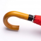 Parasol wykonany z tkaniny RPET (poliestru pochodzącego z recyklingu) i pongee 190T z uchwytem z naturalnego drewna to stylowe i ekologiczne rozwiązanie chroniące przed deszczem. Pongee 190T jest trwały i hydrofobowy, zapewniając skuteczną ochronę przed wilgocią. Naturalny drewniany uchwyt nadaje parasolowi elegancki, ciepły charakter oraz wygodę podczas trzymania. Parasol wyposażono w przycisk automatycznego otwierania dla łatwej obsługi oraz zapięcie na rzep do bezpiecznego przechowywania.