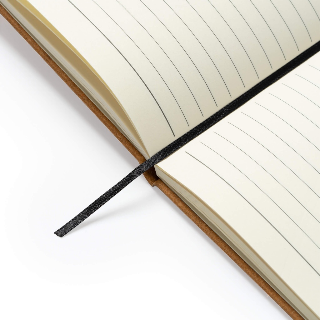 Notatnik A5 z twardymi okładkami wykonanymi ze skóry z recyklingu.