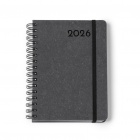 Kalendarz w formacie A5 z systemem pierścieniowym. Okładka ze skóry pochodzącej z recyklingu, z grawerunkiem oraz elastycznym paskiem. Zawiera 348 stron oraz dodatkowe 4 strony z mapami. Gramatura papieru: 60 g/m². Wnętrze z białymi kartkami.