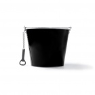 Metaliczne wiadro z dołączonym aluminiowym otwieraczem do butelek.