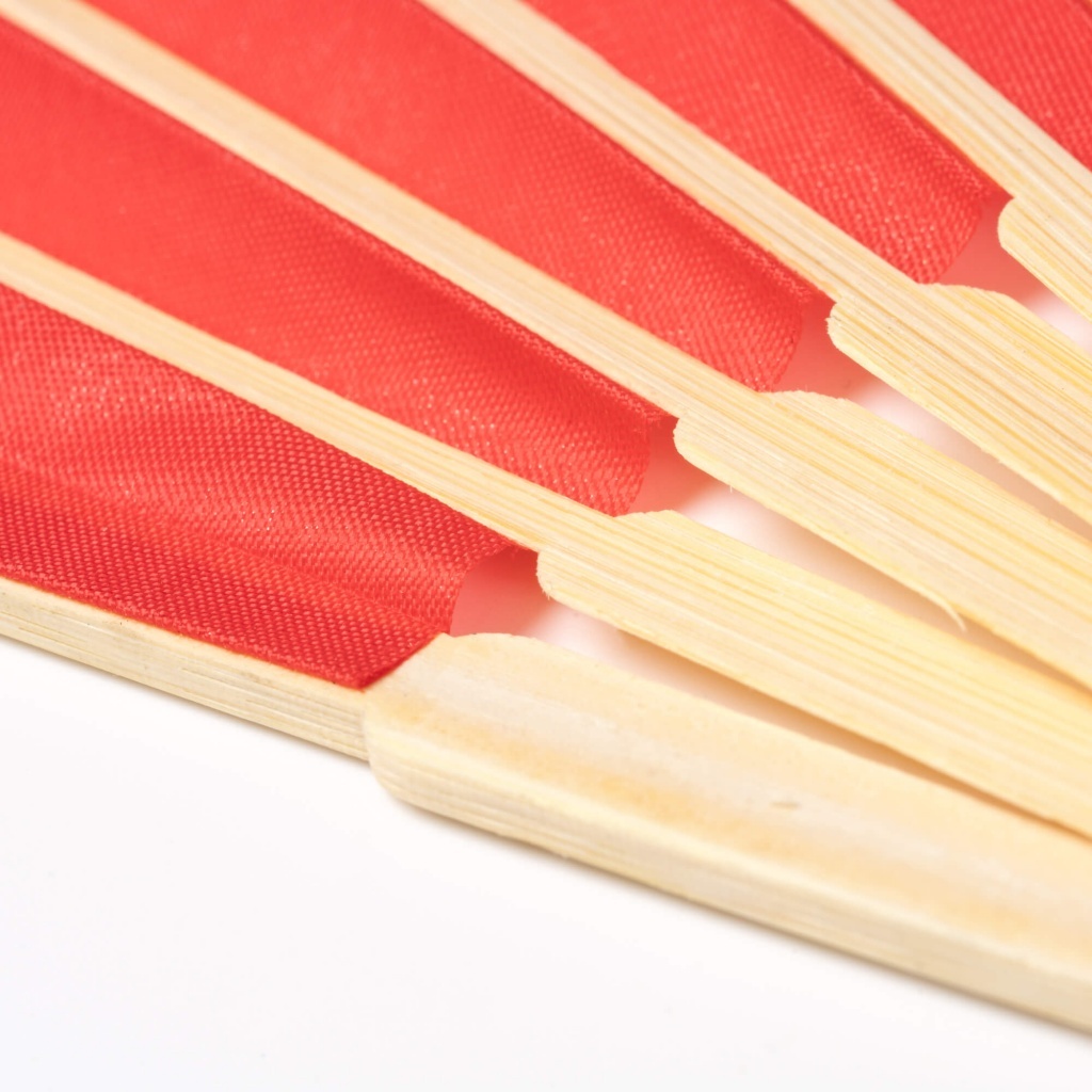 Wachlarz z bambusowym szkieletem i wytrzymałą tkaniną poliestrową.