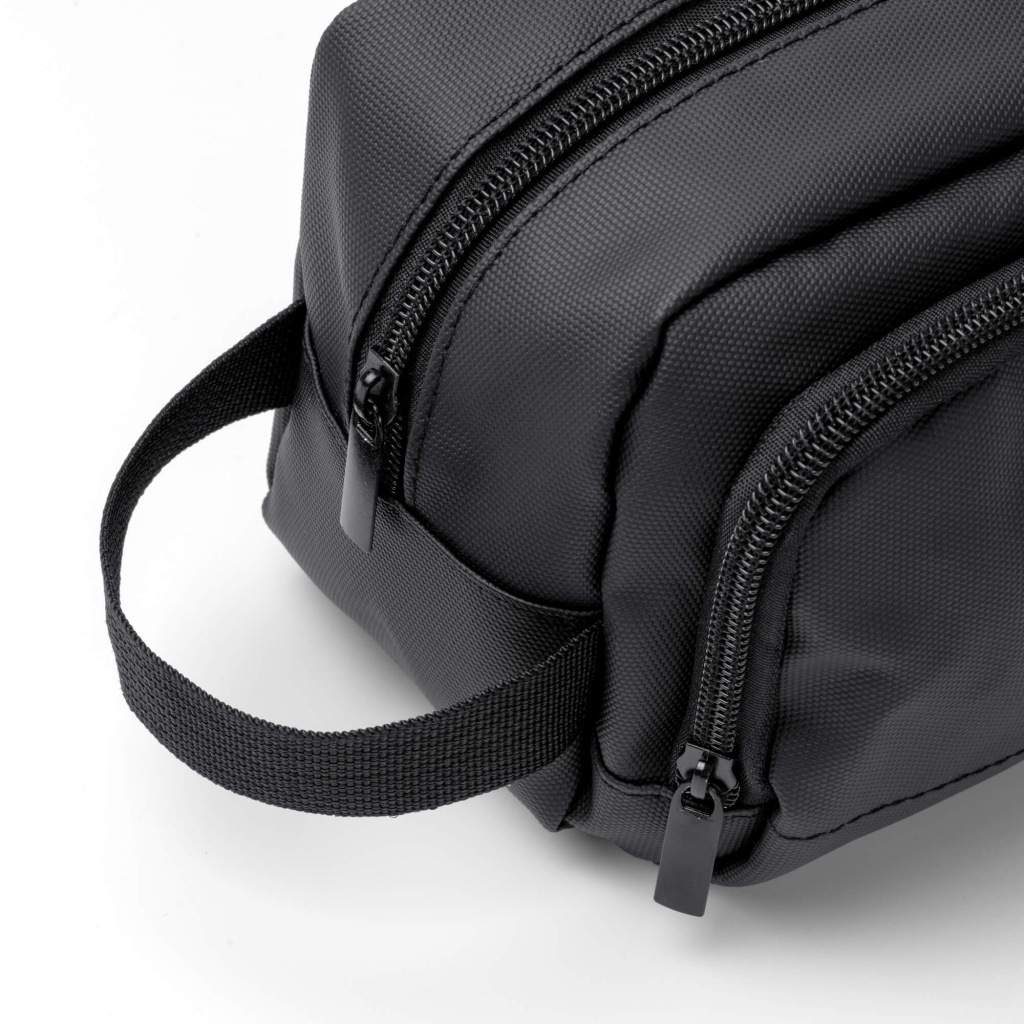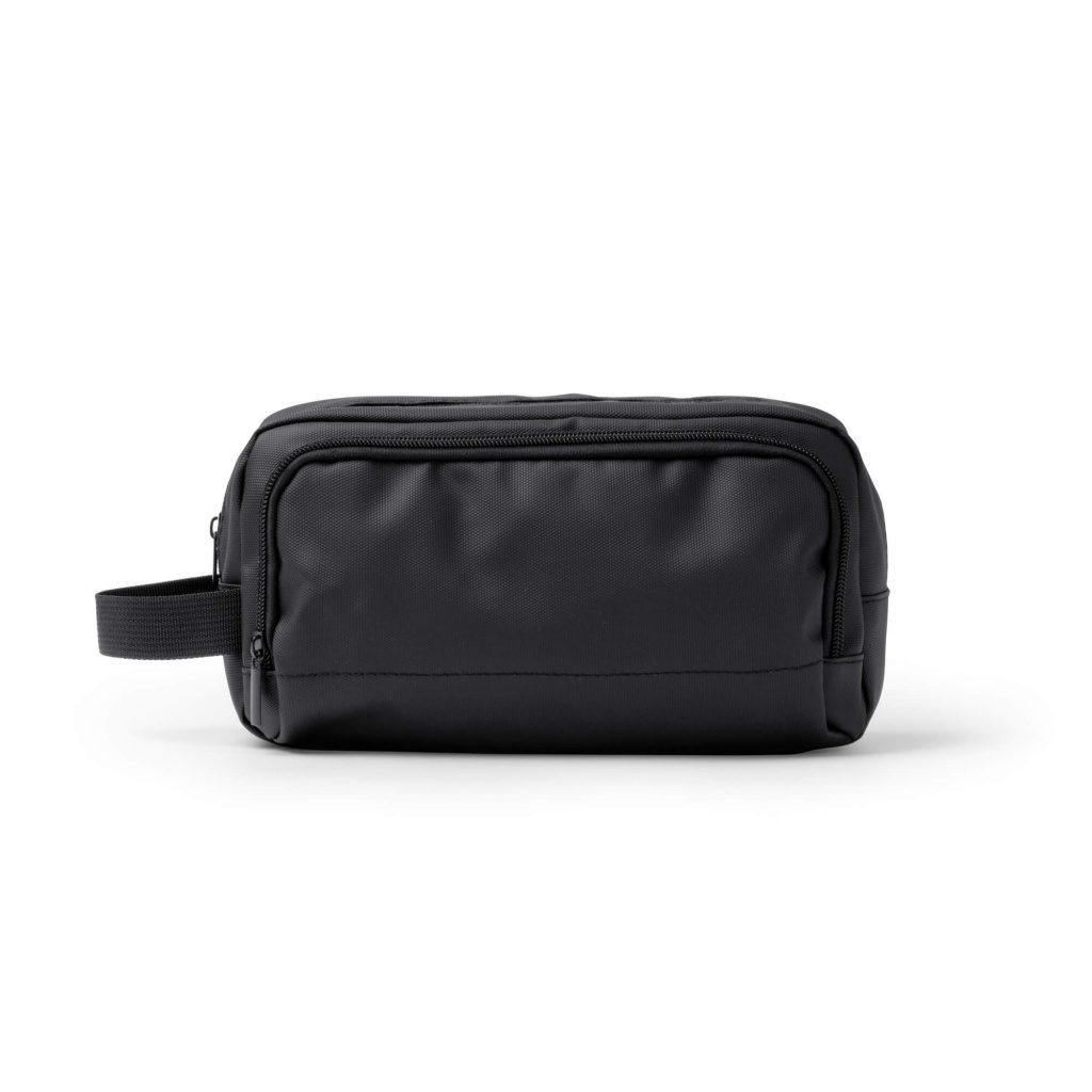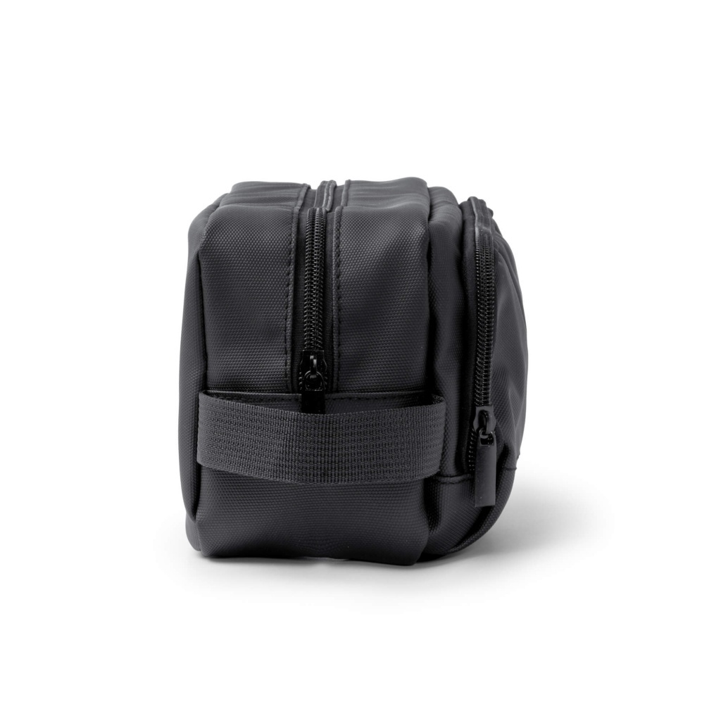 Kosmetyczka z ekoskóry PU z dwiema komorami i zamkiem błyskawicznym. Idealna do bezpiecznego przechowywania kosmetyków. Wyposażona w uchwyt ułatwiający przenoszenie.