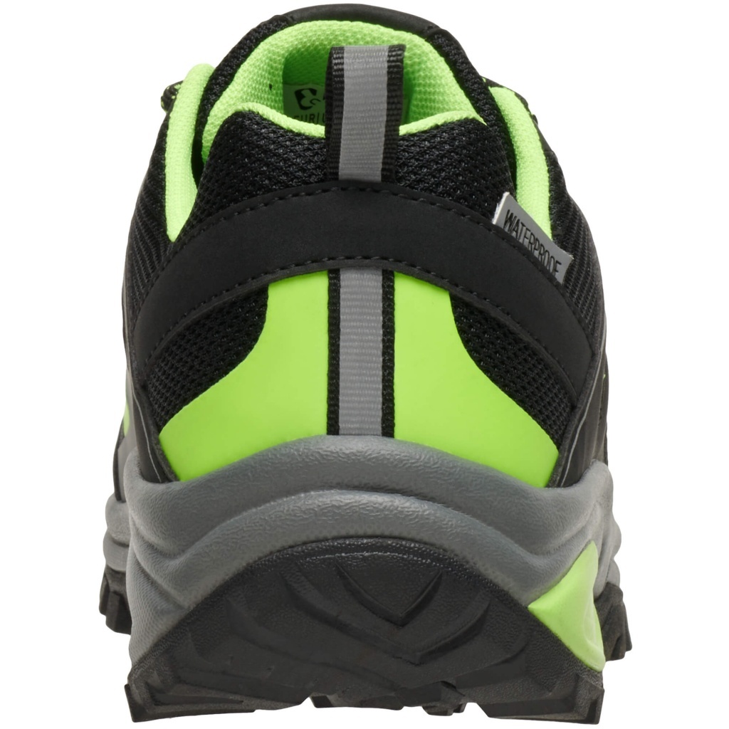 Wodoodporne buty z odblaskowymi akcentami, wyposażone w okrągłe sznurówki oraz przewiewną siateczkę. Elementy fluorescencyjne poprawiają widoczność, a amortyzowana wkładka i antypoślizgowa podeszwa zapewniają komfort oraz stabilność na różnorodnym terenie.