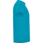 T-shirt z krótkim rękawem, podwójny karczek. Wzmacniane, kryte szwy na karku i ramionach. Brak szwów bocznych. Zaokrąglony ściągacz przy szyi.