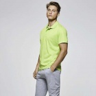 Poliestrowa koszulka polo z krótkim rękawem. Kołnierzyk dzianinowy, zapięcie na trzy guziki. Materiał oddychający, łatwy w utrzymaniu czystości i szybkoschnący.