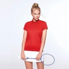 Techniczna koszulka polo damska z krótkim rękawem. Dzianinowy kołnierzyk z zapięciem na trzy guziki. Dopasowany krój.