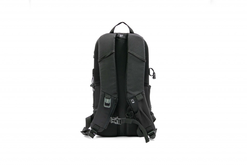 Nomad został uszyty z wysokiej jakości tkanin powstałych z ♻ butelek PET poddanych recyklingowi. Idealny do miejskich przygód, na szlak leśny oraz w podróże — solidny i funkcjonalny. Specjalne otwarcie zapewnia wygodny dostęp do głównej komory. Wbudowana komora izotermiczna utrzymuje jedzenie i napoje w chłodzie lub cieple. Wiele przegródek ułatwia uporządkowanie zawartości, a wewnętrzny rękaw pomieści bukłak z wodą lub laptopa 15,6 cala. Wyściełane, oddychające i amortyzujące plecy oraz pas ramowy zwiększają komfort noszenia. Regulowane kieszenie boczne pomieszczą butelki, osłonę przeciwwiatrową lub parasol.