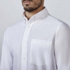 Męska koszula z kieszonką po lewej stronie piersi. Zapięcie na przedzie z ukrytymi guziczkami. Kołnierzyk zapinany na guziczki. Mankiety z dwoma guzikami.