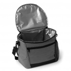 Przestronna torba termiczna wykonana z tkaniny 600D RPET. Główna komora i boczna kieszeń zamykane na zamek błyskawiczny. Wnętrze izotermiczne utrzymujące temperaturę. Regulowany pasek do wygodnego przenoszenia. Pojemność: 8 l.