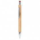 Bambusowy długopis Eco Line z kolorowym rysikiem do ekranów dotykowych i metalowym klipsem. Srebrny przycisk, klips i końcówka. Wkład jumbo 1,0 mm z niebieskim tuszem.